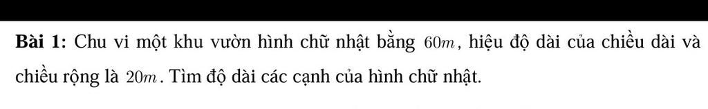 Vì hiệu độ dài chiều dài và rộng là $20m^{}$