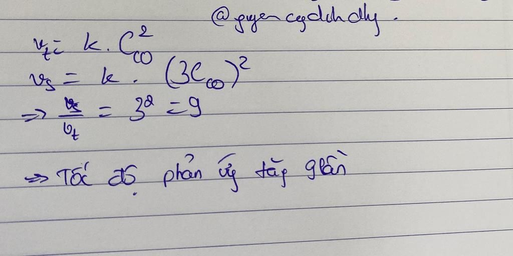 Vậy khi tăng áp suất lên 3 lần thì tốc độ phản ứng tăng 9 lần.