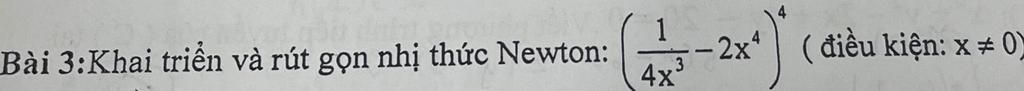 $\bigg(\dfrac{1}{4x^3}-2x^4 \bigg)^4=16x^{16}+\dfrac{1}{256x^{12}}-\dfrac{1}{8x^5}+\dfrac{3}{2}x^2-8x^9+16x^{16}$