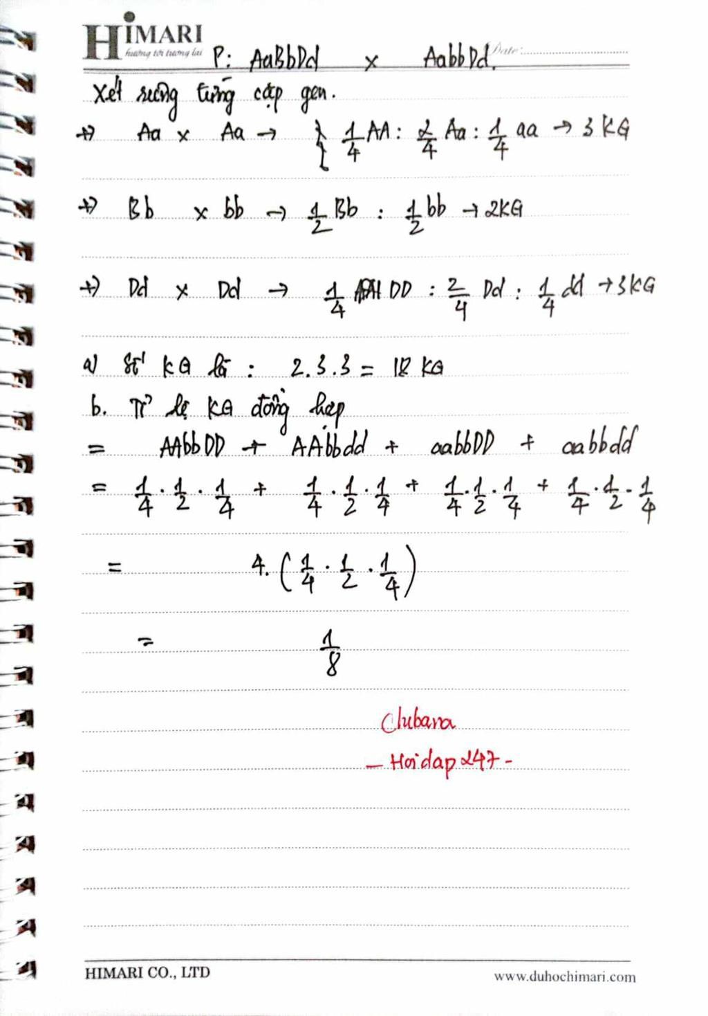 ⇔ số kiểu gen: 3 x 2 x3 =18 kiểu gen