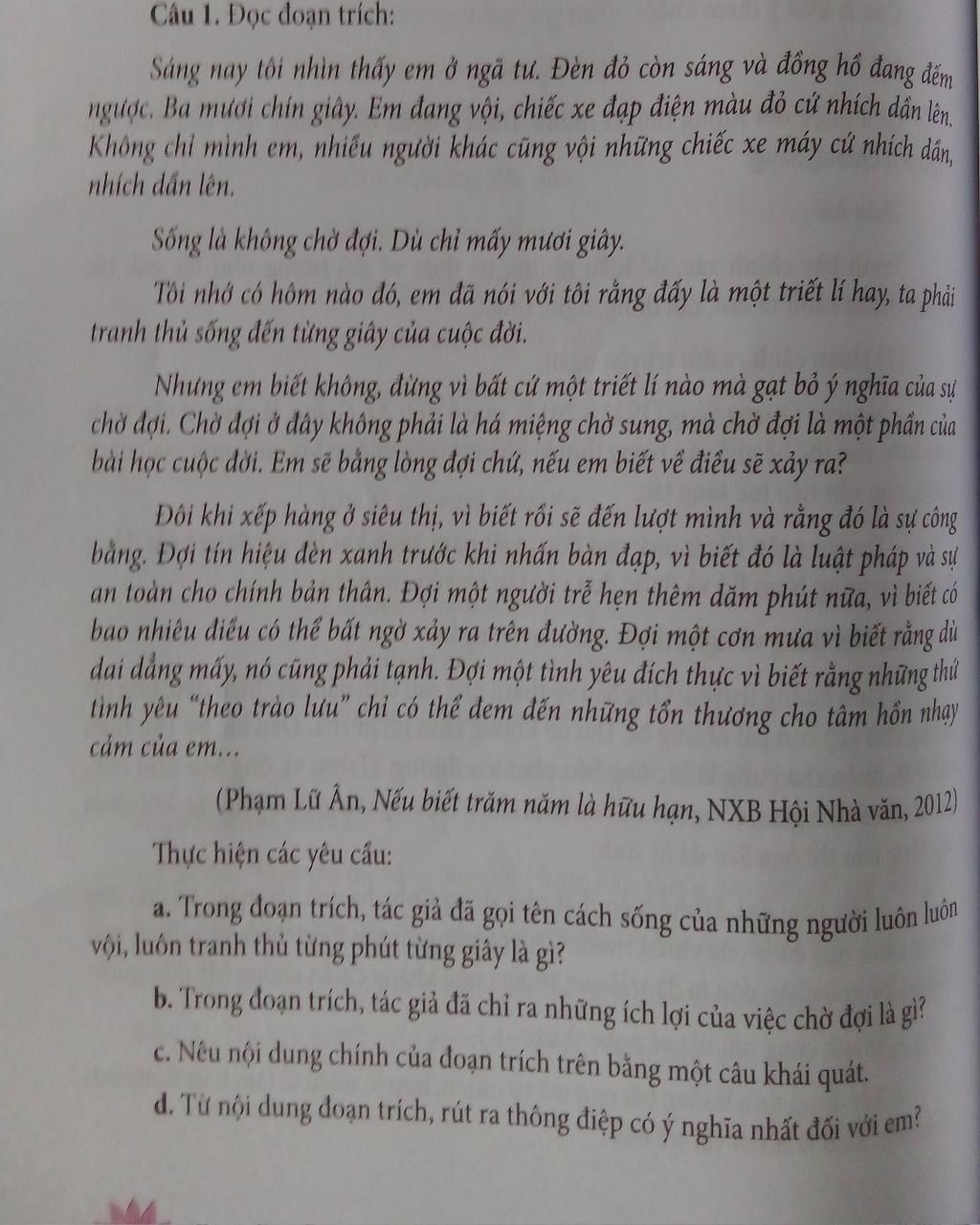 Trong đoạn trích, tác giả dã chỉ ra việc chờ đợi là một phần của cuộc đời; là sự công bằng và tuân thủ pháp luật
