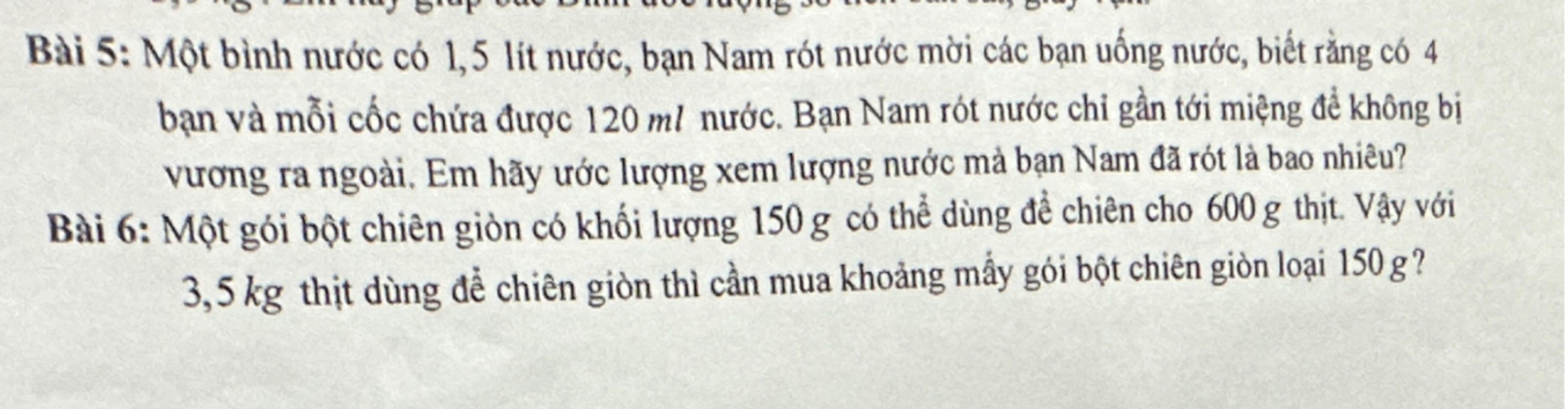=> Bạn Nam rót nước xấp xỉ 480ml