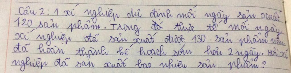 Gọi x (ngày) là số ngày xí nghiệp hoàn thành sản phẩm theo kết hoạch (sản phẩm) (x>120; x là số tự nhiên)