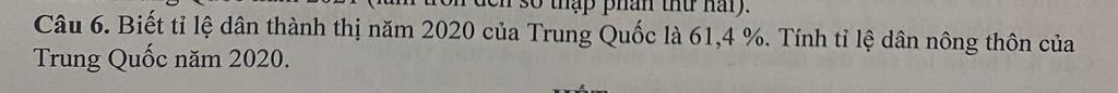 `=>` Tỉ lệ dân nông thôn khi biết tỉ lệ dân thành thị `= 100,0 -` tỉ lệ dân thành thị (đv: `%`)