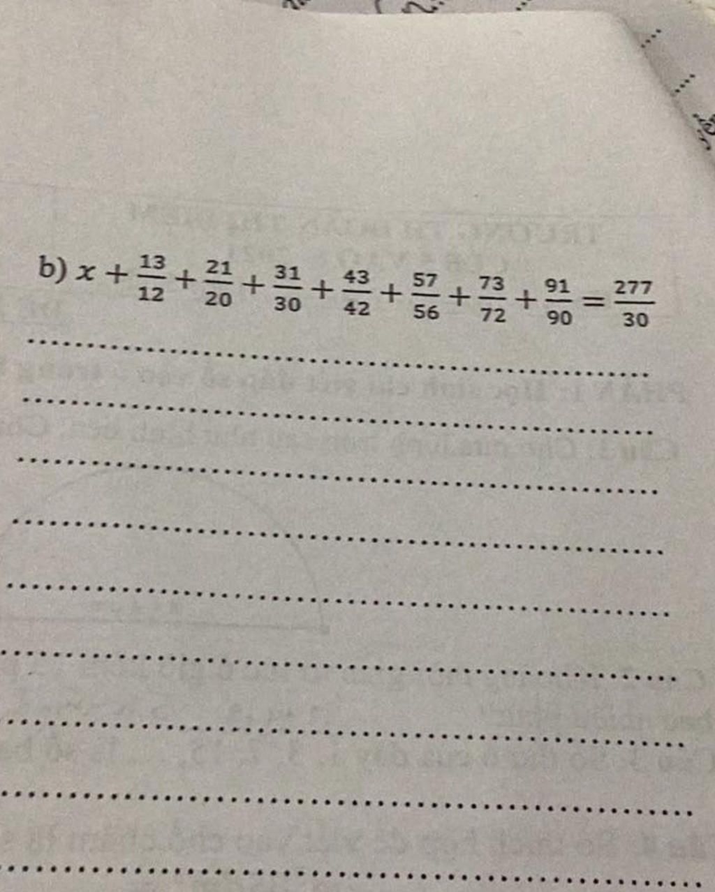 `x + 13/12 + 21/20 + 31/30 + 43/42 + 57/56 + 73/72 + 91/90 = 277/30.`