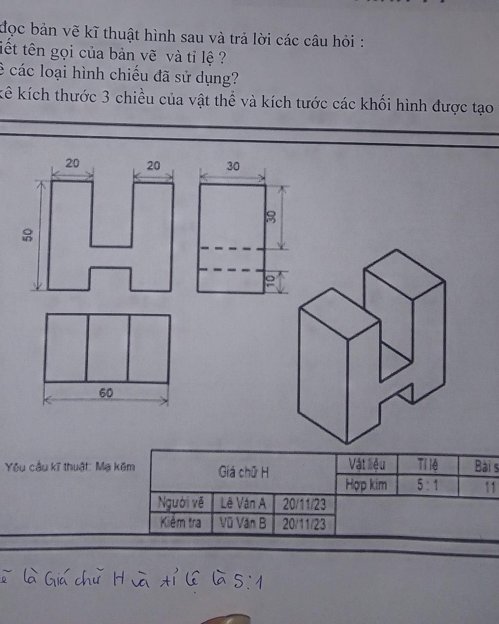 iết tên gọi của bản vẽ và tỉ lệ ?