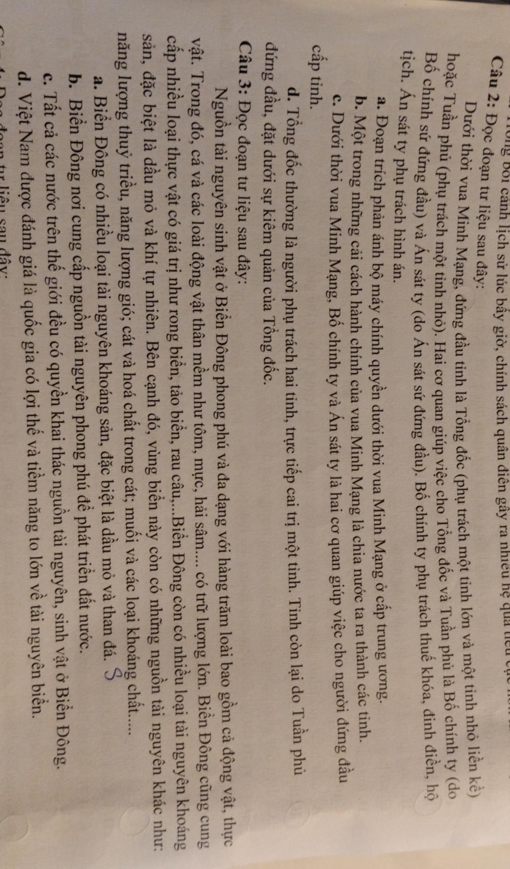 `a,` Sai `-` Nói về bộ máy chính quyền ở cấp tỉnh, không phải cấp trung ương. Ta biết Tổng đốc, tuần phủ là chức quan đứng đầu tỉnh