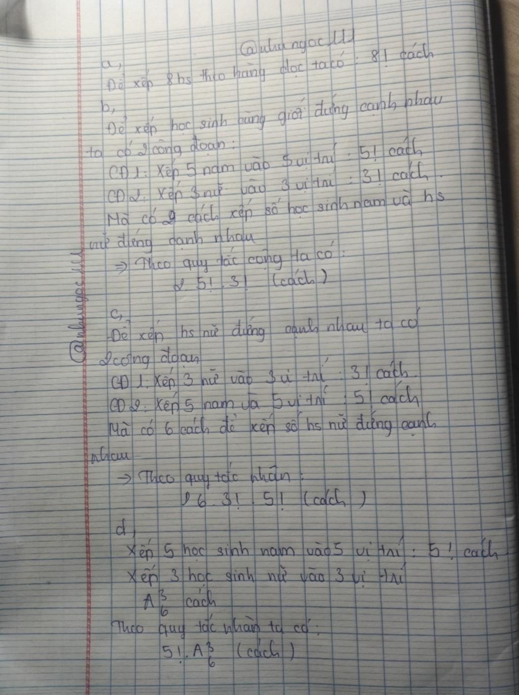 c) Số cách xếp học sinh nữ đứng cạnh nhau là.