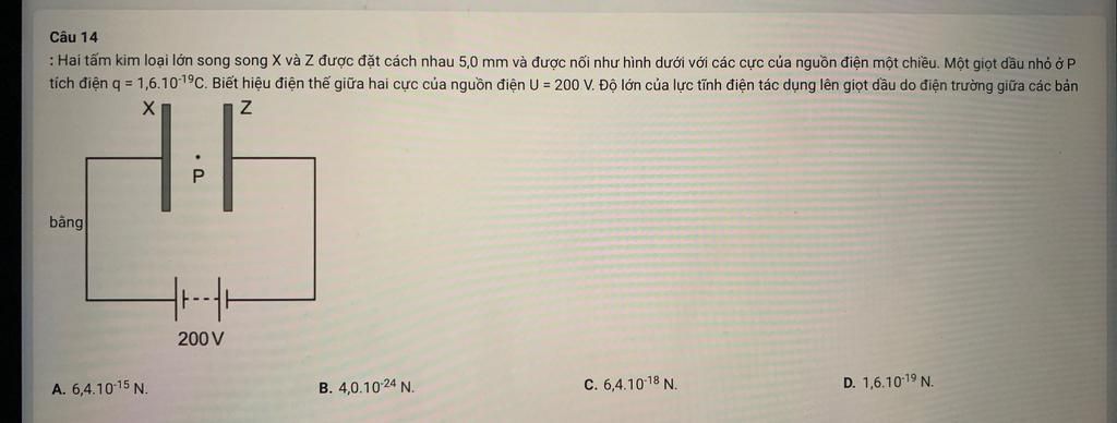 F = qE = 1,{6.10^{ - 19}}.40000 = 6,{4.10^{ - 15}}N