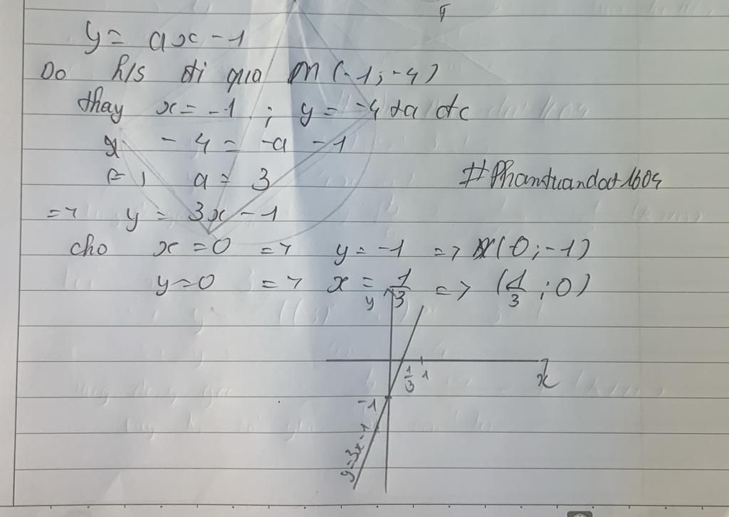 `a)` Đồ thị hàm số đi qua điểm `M(-1;-4)=>x=-1;y=-4`