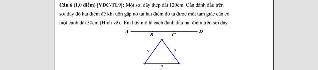 Câu 6 (1,0 điểm) (VDC-TL9]: Một sợi dây thép dài 120cm. Cần đánh dấu trên