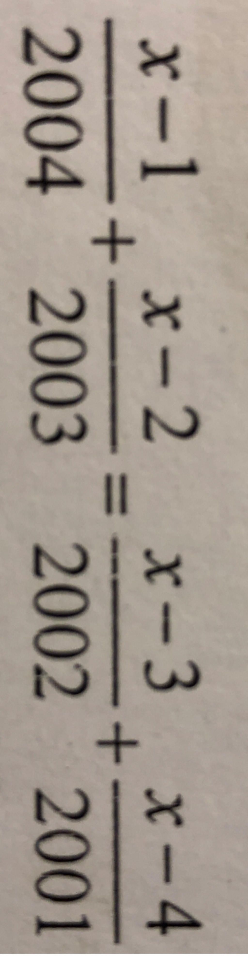 `(x - 1)/2004 + (x - 2)/2003 = (x -3)/2002 + (x-4)/2001`