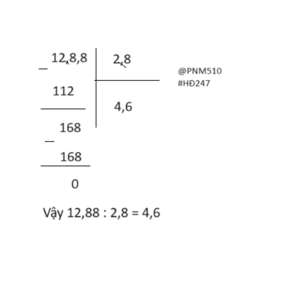 Vậy : ` 12,88 : 2,8 = 4,6 `