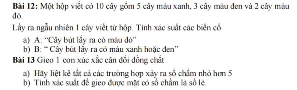 ;-; thầy mình nói là phải trình bày theo kiểu P= 3/6=0,5 thì đúng hơn ( bài 13 )