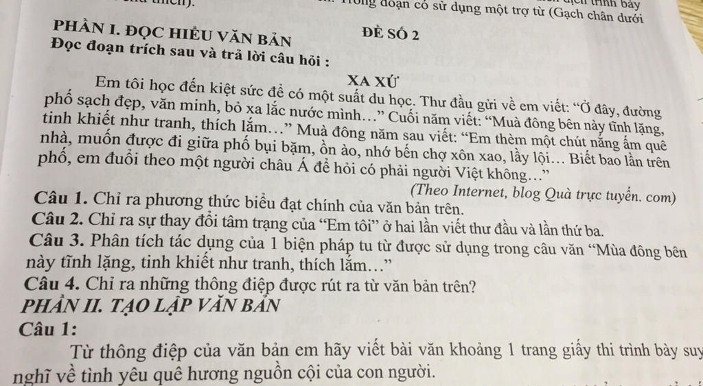 Câu 1: phương thức biểu đạt chính của đoạn văn trên là tự sự.