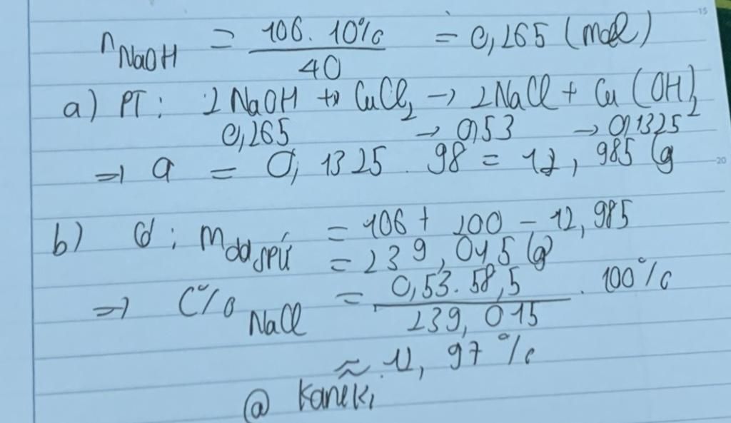 a. để tính giá trị của a,ta cần xác định phản ứng xảy ra giữa NaOH và CuCl2, phản ứng xảy ra như sau: