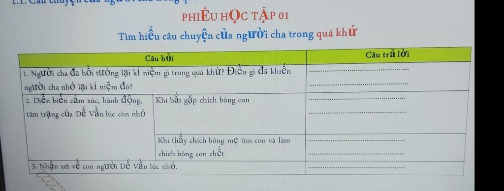 1. Người cha đã hồi tưởng lại kỉ niệm gì trong quá khứ? Điều gì đã khiến