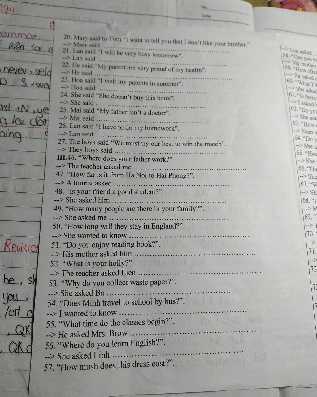 20. Mary said to Tom that she wanted to tell him that she didn't like his brother.