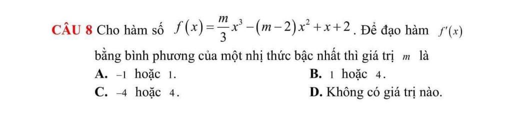 thay đáp án A,B,C,D vào thấy đáp án B m=1 hoắc 4 thỏa mãn