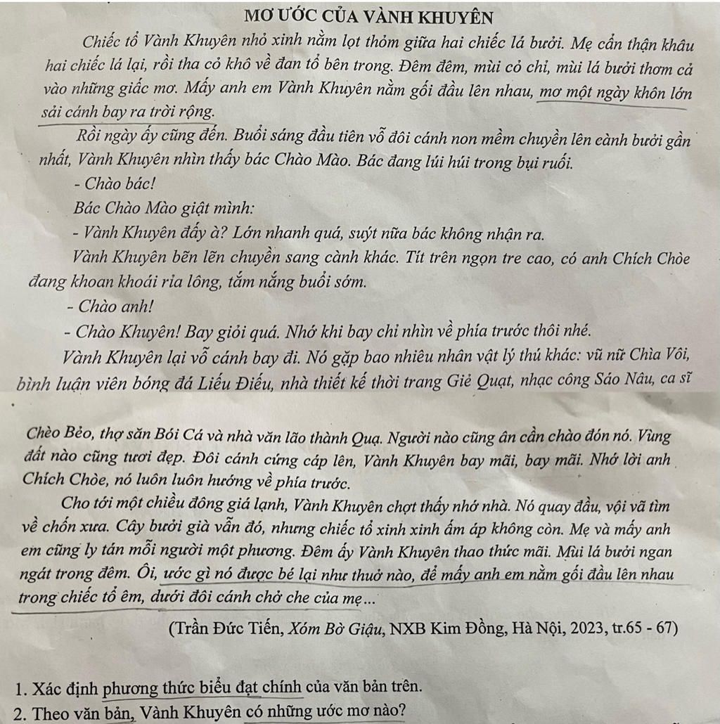 `2.` Theo văn bản, Vành Khuyên có những ước mơ: