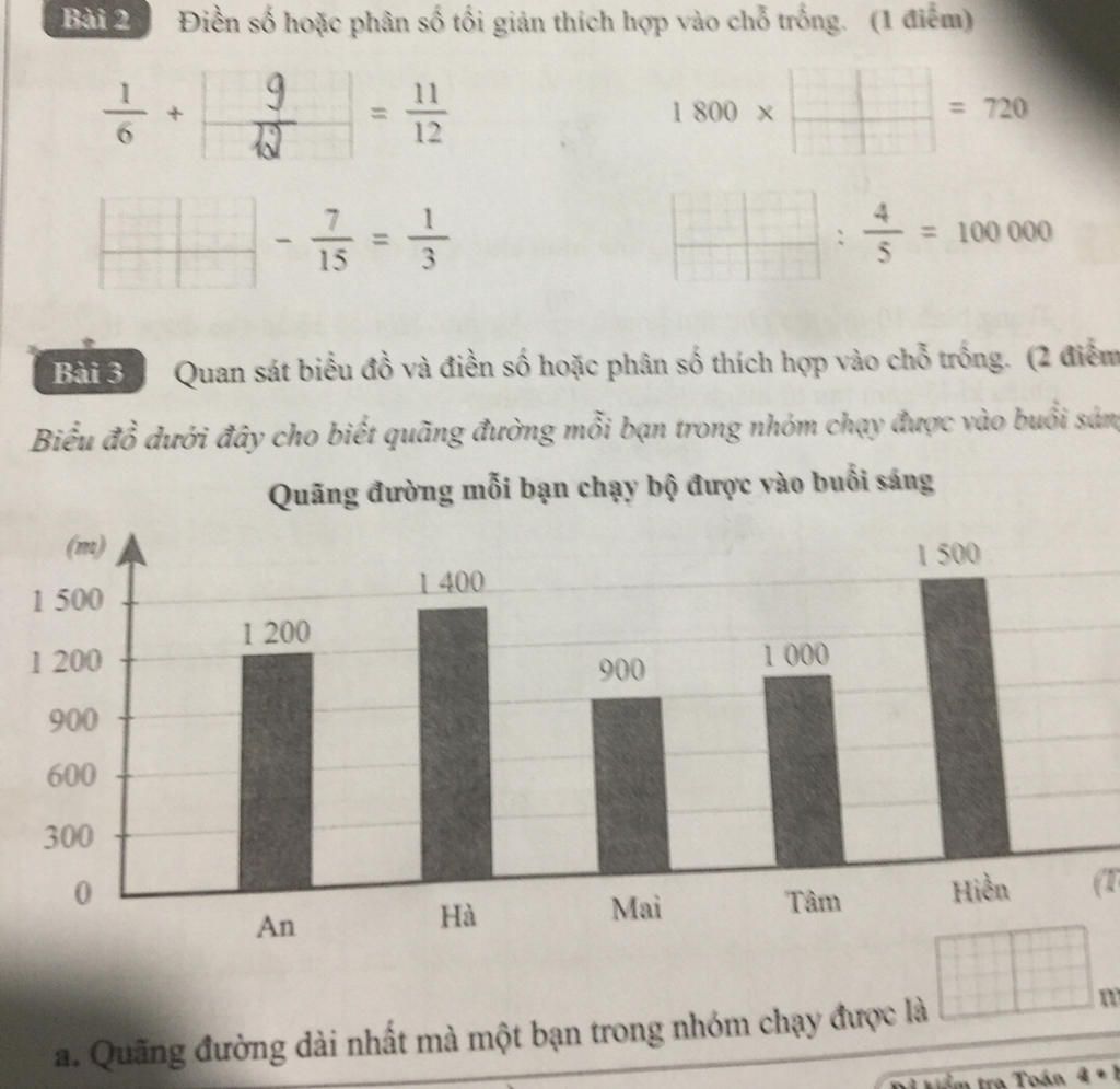 `=>` Quãng đường Hiền chạy dài nhất với `1500m`
