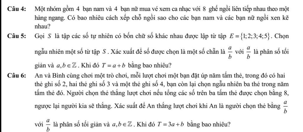 $\to$Số lượng số của tập $S$ là $C^4_5\cdot 4!=120$