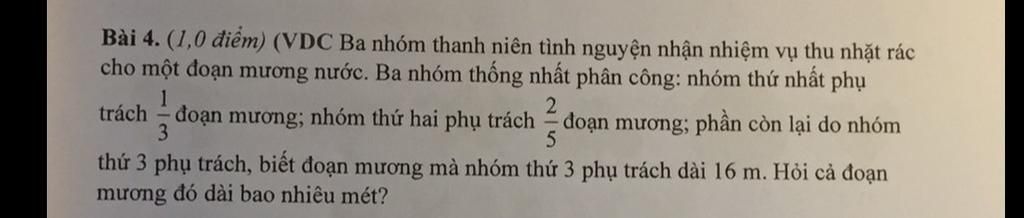 Phân số chỉ số đoạn mương nhóm thứ 3 phụ trách là: