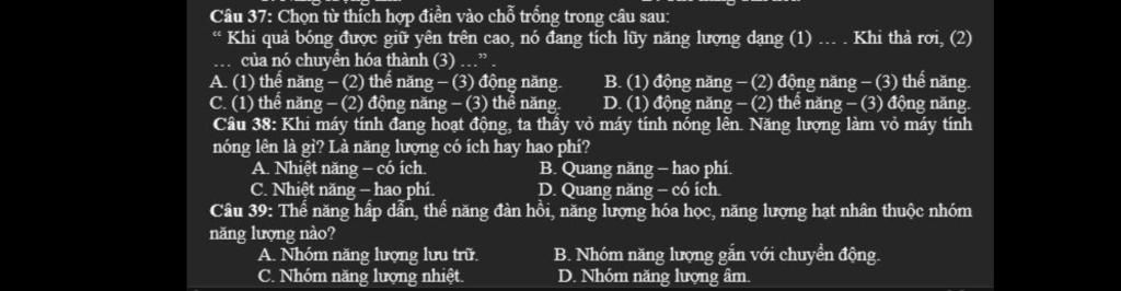 Câu 37: Chọn từ thích hợp điền vào chỗ trống trong câu sau: