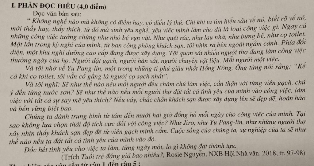 5. Câu nói của Yu Pang-lin một trong những tỉ phú Hồng Kong: " Kể cả khi cọ toilet, tôi vẫn cố gắng là người cọ sạch nhất" có y/n như thế nào vs anh/chị?