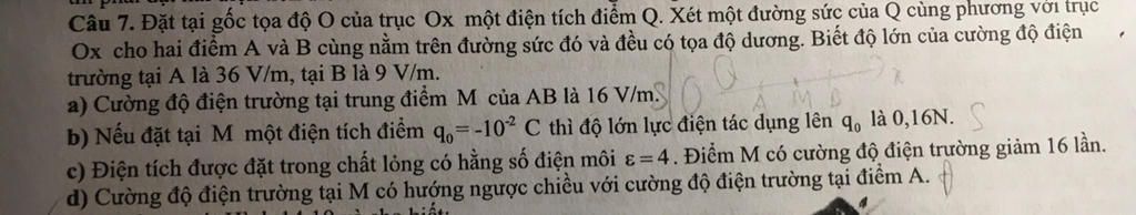 `A,M,B` cùng nằm trên một đường sức nên cường độ điện trường tại các điểm có cùng phương, cùng chiều với nhau.