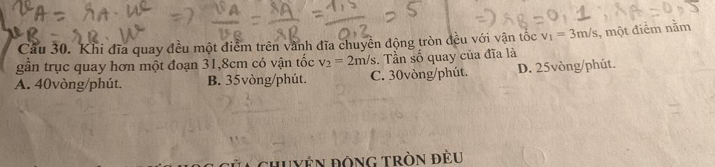 \Rightarrow n = 60f = 60.0,5 = 30\left( {vong/ph} \right)