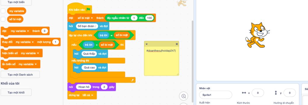 Tạo chương trình "Đoán số bí mật" ( Gợi ý : Nếu câu trả lời đúng thì thông báo " Hoan hô", nếu câu trả lời bé hơn số bí mật thì thông báo " Quá thấp" và nếu câu trả lời lớn hơn số bí mật thì thông báo " Quá cao")