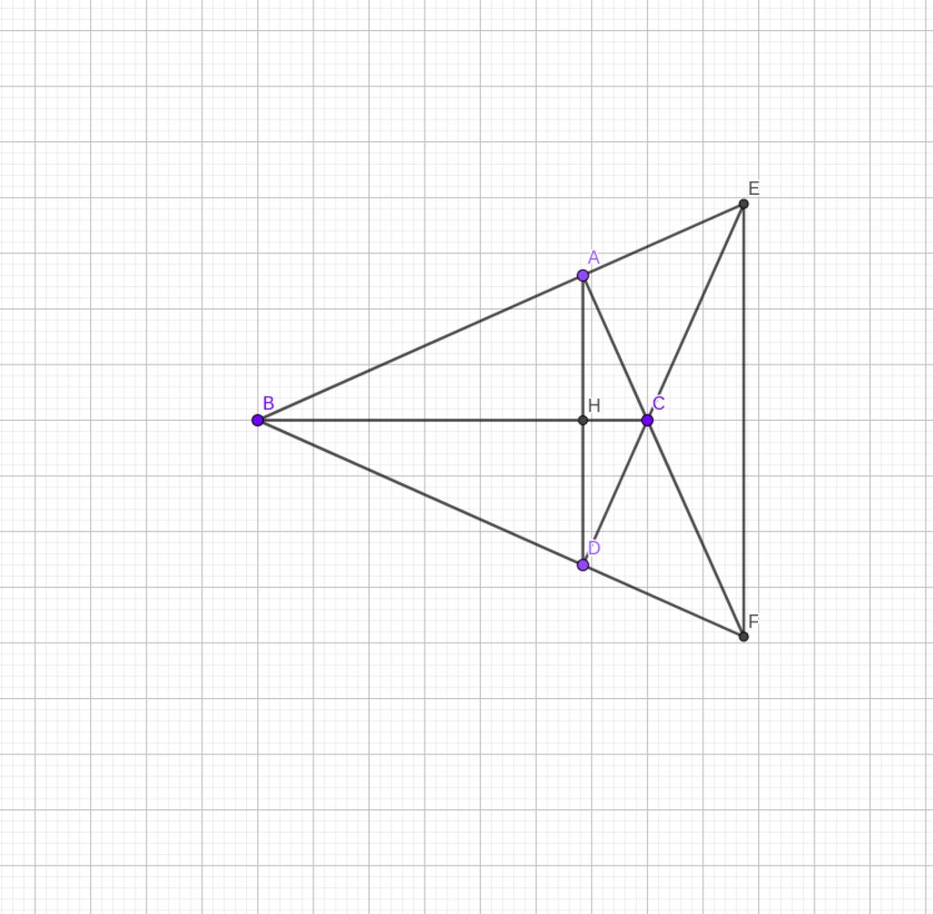 c)Gọi E là giao điểm của AB với CD; F là giao điểm của AC với BD. Chứng minh :tam giác BEF là tam giác cân