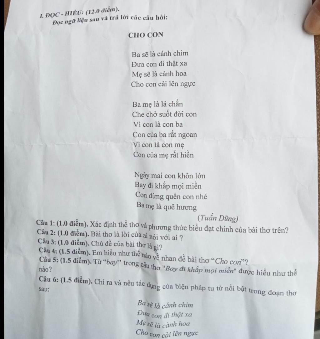 I. ĐỌC - HIỂU: (12.0 điểm).