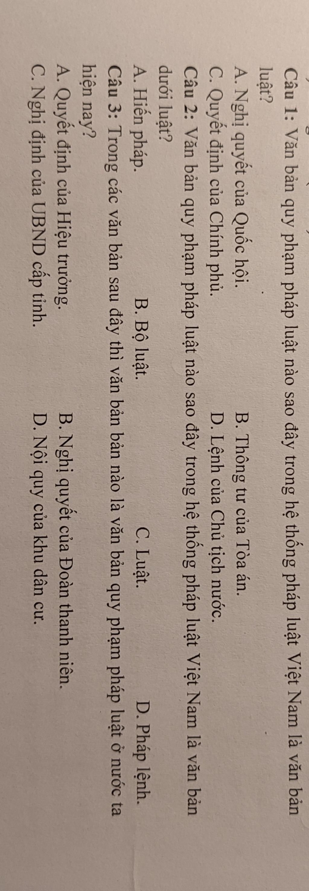 `->` bao gồm: hiến pháp; luật; pháp lệnh, lệnh; Nghị định và Quyết định của các cơ quan chính quyền...