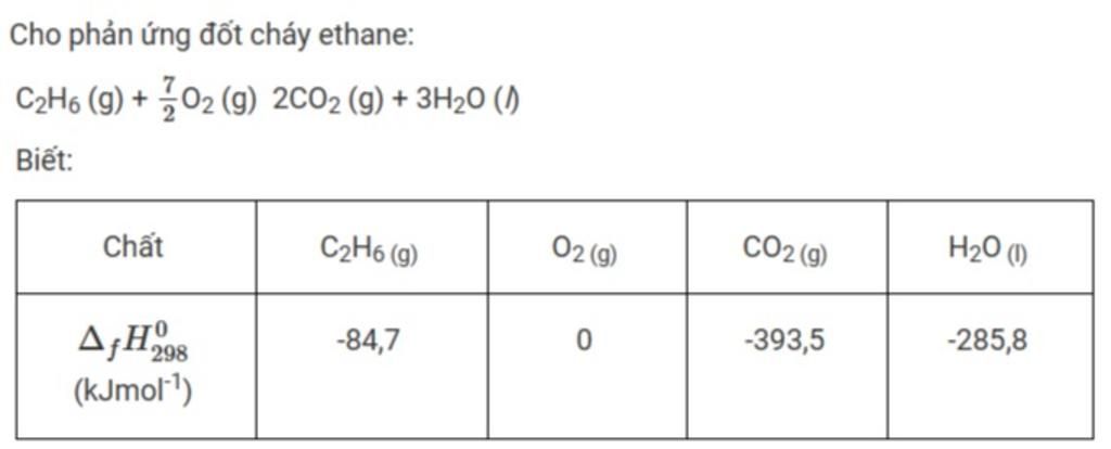 $Δ_rH_{298}^0=2Δ_fH_{298}^0(CO_2) +3Δ_fH_{298}^0(H_2O) -Δ_fH_{298}^0(C_2H_6)$