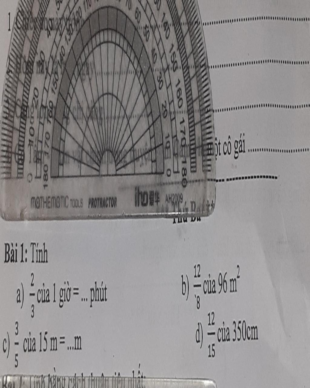 `(12)/(15)` của `350cm` là `:`