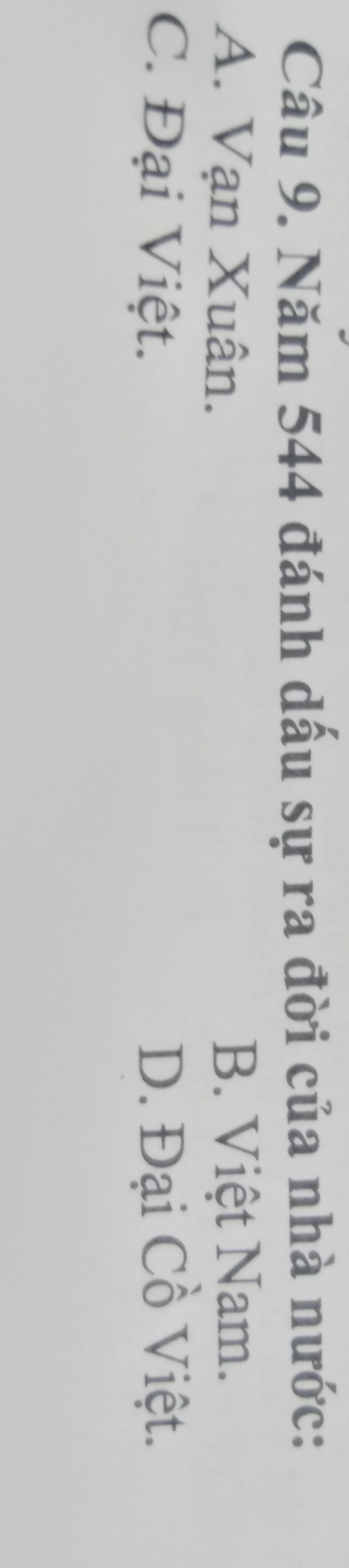 Giải thích : năm 544 Lý Bí tự đã lập nên nước Vạn Xuân
