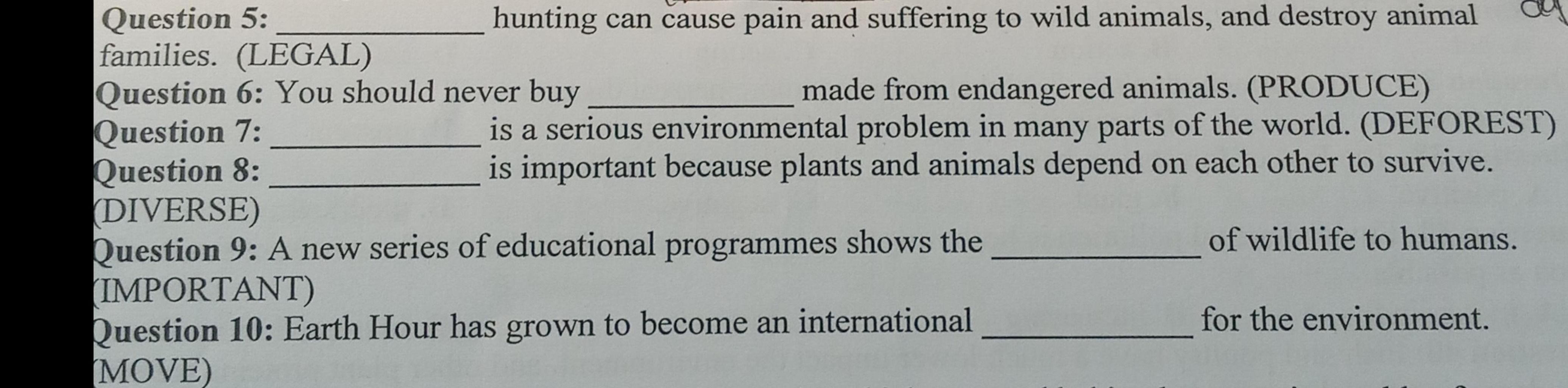 `-` Việc săn bắn bất hợp pháp có thể gây đau đớn và đau khổ cho động vật hoang dã và tiêu diệt các gia đình động vật.