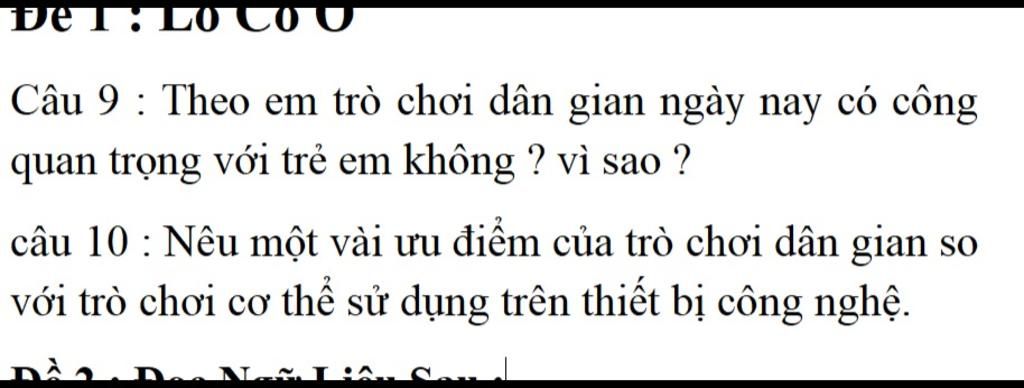 Câu 9 : Theo em, trò chơi dân gian ngày nay vẫn rất quan trọng đối với trẻ em.