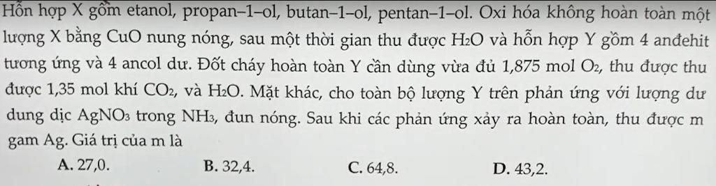 `-` Đốt `X` chỉ có `CH_2` cháy `=>n_{O(X)}=1,35.3=4,05(mol)`