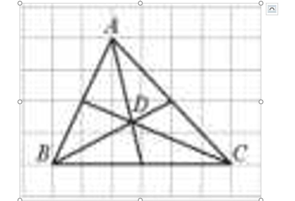 `**` Đường thẳng `BD,CD,AD` nối từ lân lượt các đỉnh `B,C,A` đến lần lượt các trung điểm của cạnh `AC,BA,BC`