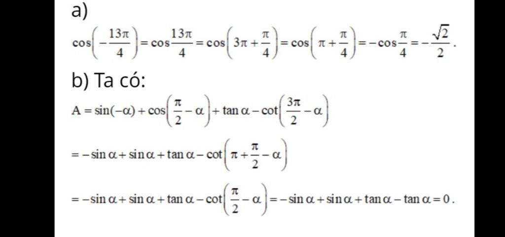 Cho em hỏi vì sao cot(3pi/2 - a)= cot(pi+pi/2-a) mà sau đó lại = cot(pi/2 -a) ạ