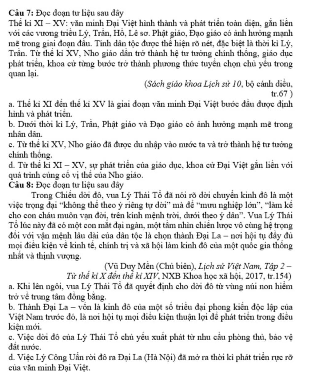 a. Thế kỉ XI đến thế kỉ XV là giai đoạn văn minh Đại Việt bước đầu được định