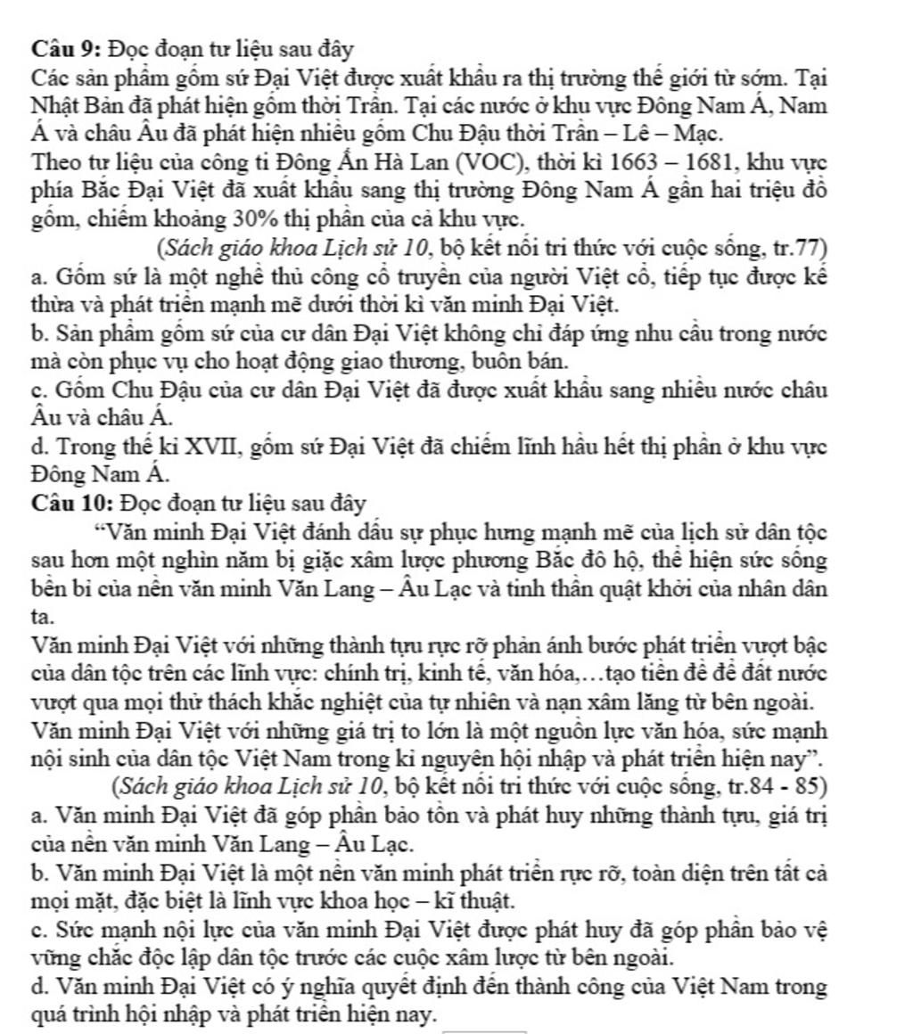 d. Văn minh Đại Việt có ý nghĩa quyết định đến thành công của Việt Nam trong quá trình hội nhập và phát triển hiện nay.