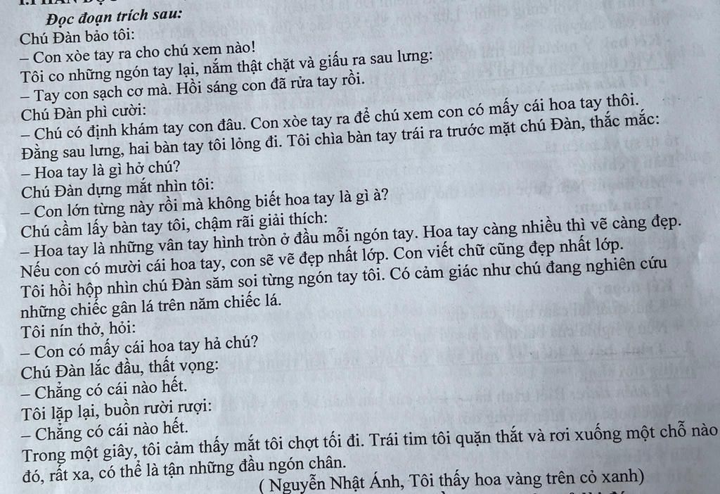 – Chú có định khám tay con đâu. Con xòe tay ra để chú xem con có mấy cái hoa tay ...