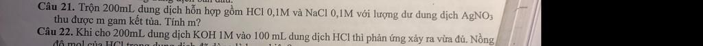 Mik tưởng số mol của HCl và NaCl là 0,1 chứ