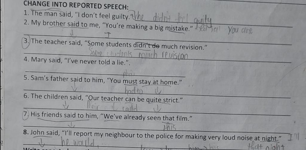 `-` Khi viết lại câu tường thật, nhớ bỏ dấu ngoặc kép.