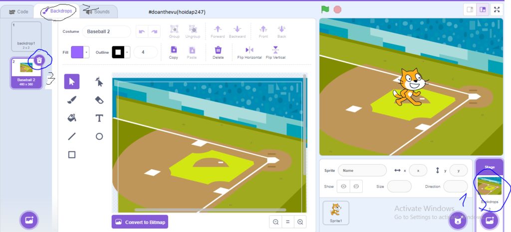 cách xóa phong nền ( sân khấu ) trong scratch 3.29.1
