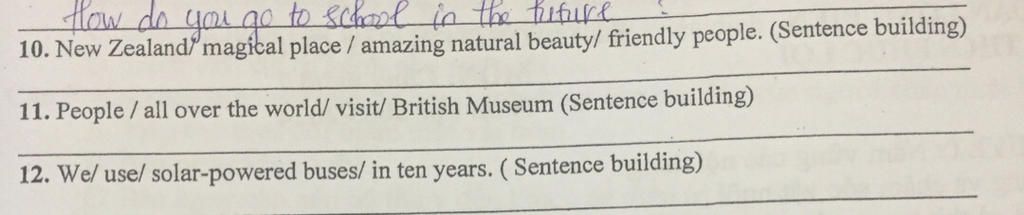 10. New Zealand/magical place / amazing natural beauty/ friendly people. (Sentence building)